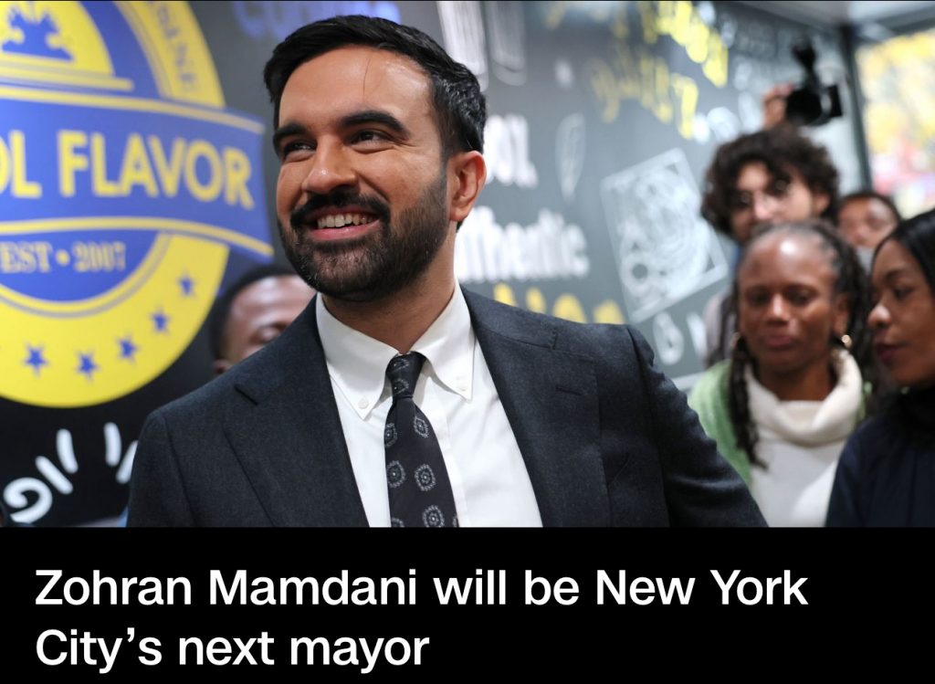 نیویارک (پاکستانی نیوز/ ویب ڈیسک ) امریکہ میں 34 سالہ ڈیموکریٹک سوشلسٹ زہران ممدانی نے امریکی صدر ڈونلڈ ٹرمپ کی مخالفت کے باوجود نیویارک سٹی کے میئر کا انتخاب جیت لیا۔